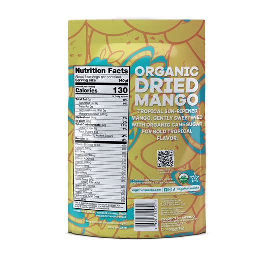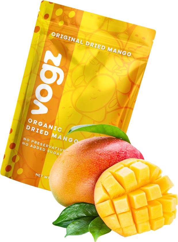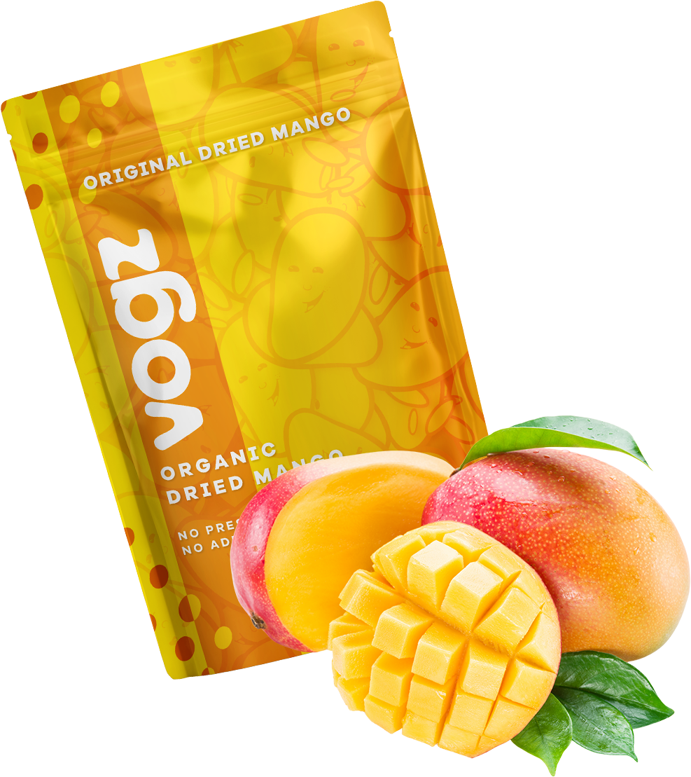 At Vogz, our dried mangoes start at our organic farms, free from synthetic pesticides for pure flavor. Harvested at peak ripeness, they are gently dried and packaged to preserve their natural sweetness.